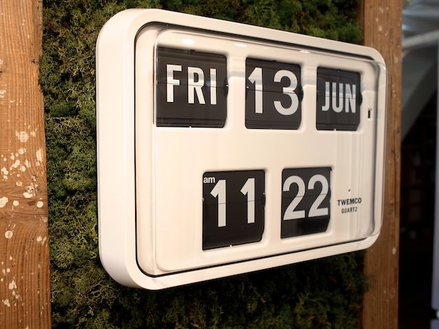 前のアンティークの時計、お店の雰囲気にもすごく合っていてお気に入りだったのですが、針と針が重なり合って時間が止まる事が多くなったんですよね〜。