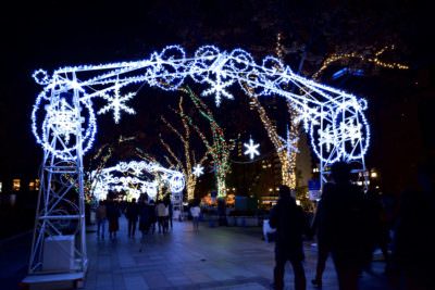 中央公会堂を目指して歩いていましたが、道なりに並ぶ木も電飾されてとても綺麗でした。