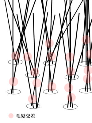 ※毛髪交差はエリアで集合しているパターンが多く、それが大きな癖として表面に現れます。