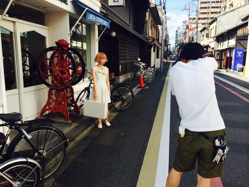 映画のセットのようなイノダコーヒー本店の前で撮ってみたり。