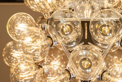たんぽぽの綿毛が太陽光に輝く姿をイメージされたデザインは多角形の球体に電球をぐるっと接続したシンプ