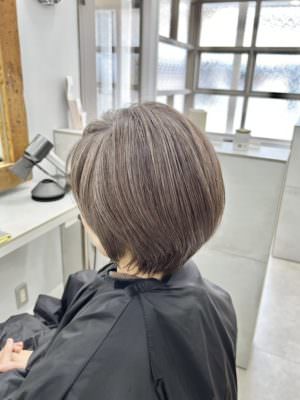 ハイライトと白髪をラベンダーアッシュで馴染ませることで、