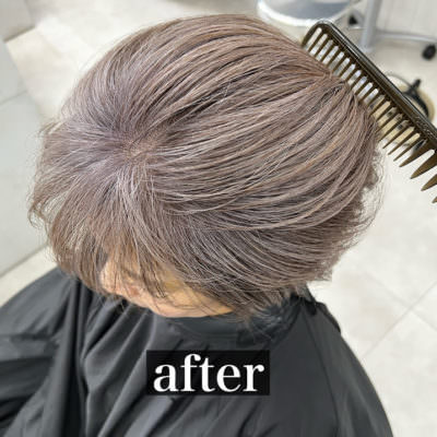 afterは黄味を取り除くことでハイライトの透明感を復活させて、肌色に合う素敵なラベンダー系に仕上げました!