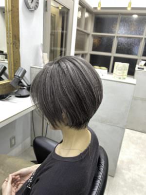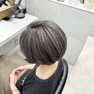 白髪はランダムなギラつきのみ取り去り、淡いアッシュ系に。