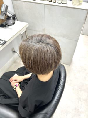 白髪に対してハイライトを足して馴染ませていくのですが、印象的にはマイナスのデザイン。