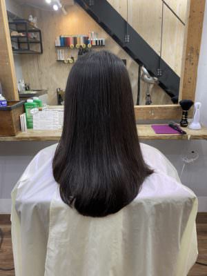 元々ストレートよりの髪質をされていますが、今回は表面に出てくるぱやついた毛の悩みと、くくり跡が付きやすいというお悩みでメニューを選択していただきました。
