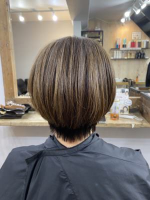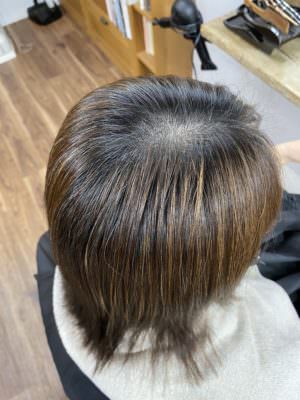 今回は白髪染めずにハイライトだけで全体をぼかし、黒髪、白髪、ハイライトの3色に絞っていく大人の地毛ハイライトプランでのbefore & after。