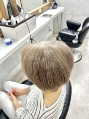 白髪率80%以上の方にオススメ!ワンメイクカラー で仕上がるペール系グレージュ。