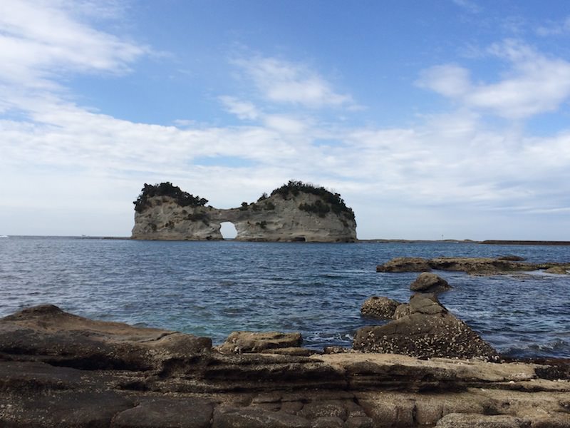 海沿いを走ってると、円月島という臨海浦に浮かぶ島を発見。