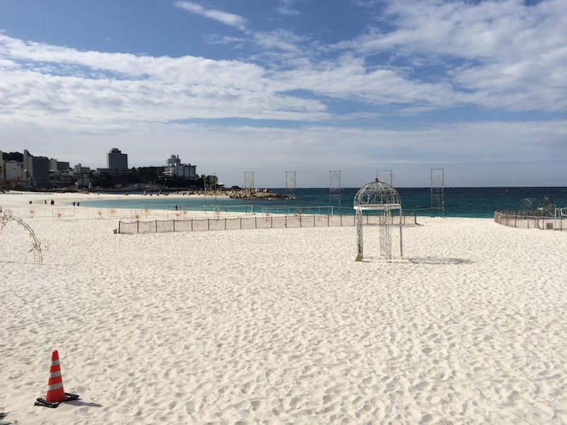 茶色い砂浜しか見たことがなかったので少し感動^^